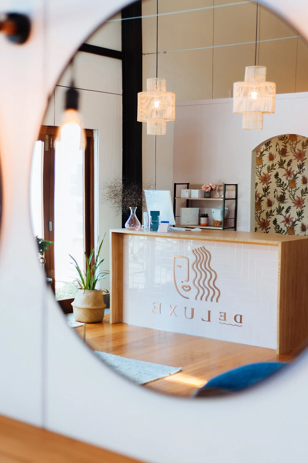 When Anneke got the opportunity to move her business, Deluxe Beauty and Permanent Makeup, into bigger premises, she contacted us for help with the fit out. She was very excited and had big plans, but was a bit overwhelmed and wasn’t sure where to start. We helped Anneke take her vision and turn it into a reality. As well as the overall look of the space, we designed the front counter, chose and supplied the wallpaper, curtain dividers, pendant lights, and reception furniture.